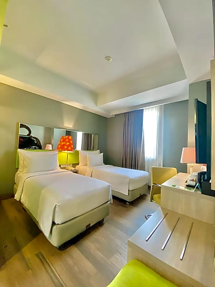 Providing free toiletries, this twin room includes a private bathroom with a shower and slippers. The air-conditioned twin room provides a flat-screen TV with cable channels, a tea and coffee maker, a seating area, a wardrobe as well as city views. The unit offers 2 beds.